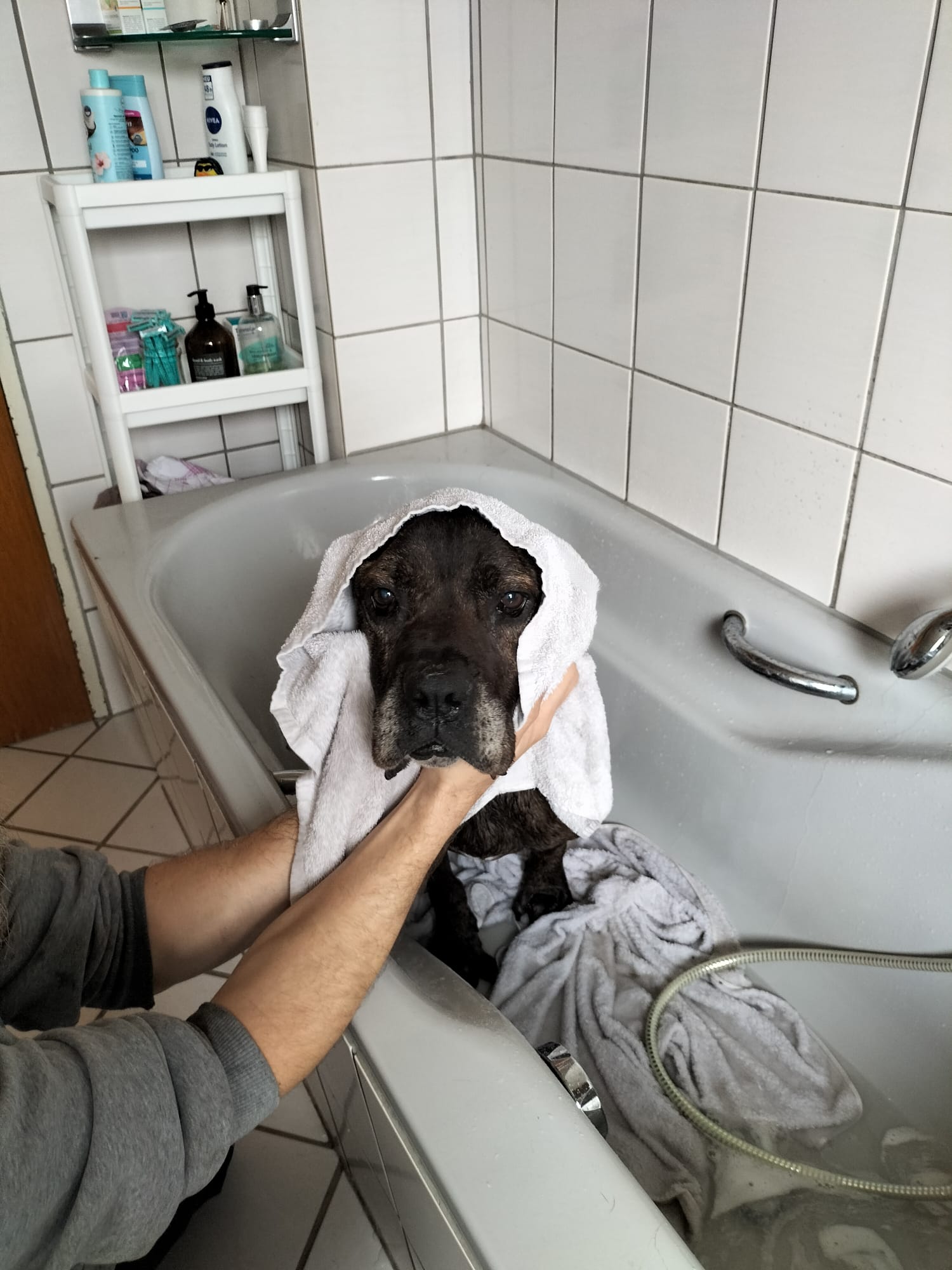 Ach so: Boza wiegt aktuell 40 kg – er hat also seit Februar 15 kg zugenommen.