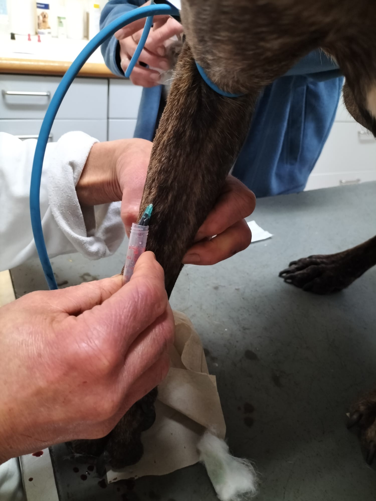 19.03.2024: Boza wiegt jetzt 27,6 kg und hat endlich seinen Termin bei unserer Tierärztin zum Check und Blut abnehmen.